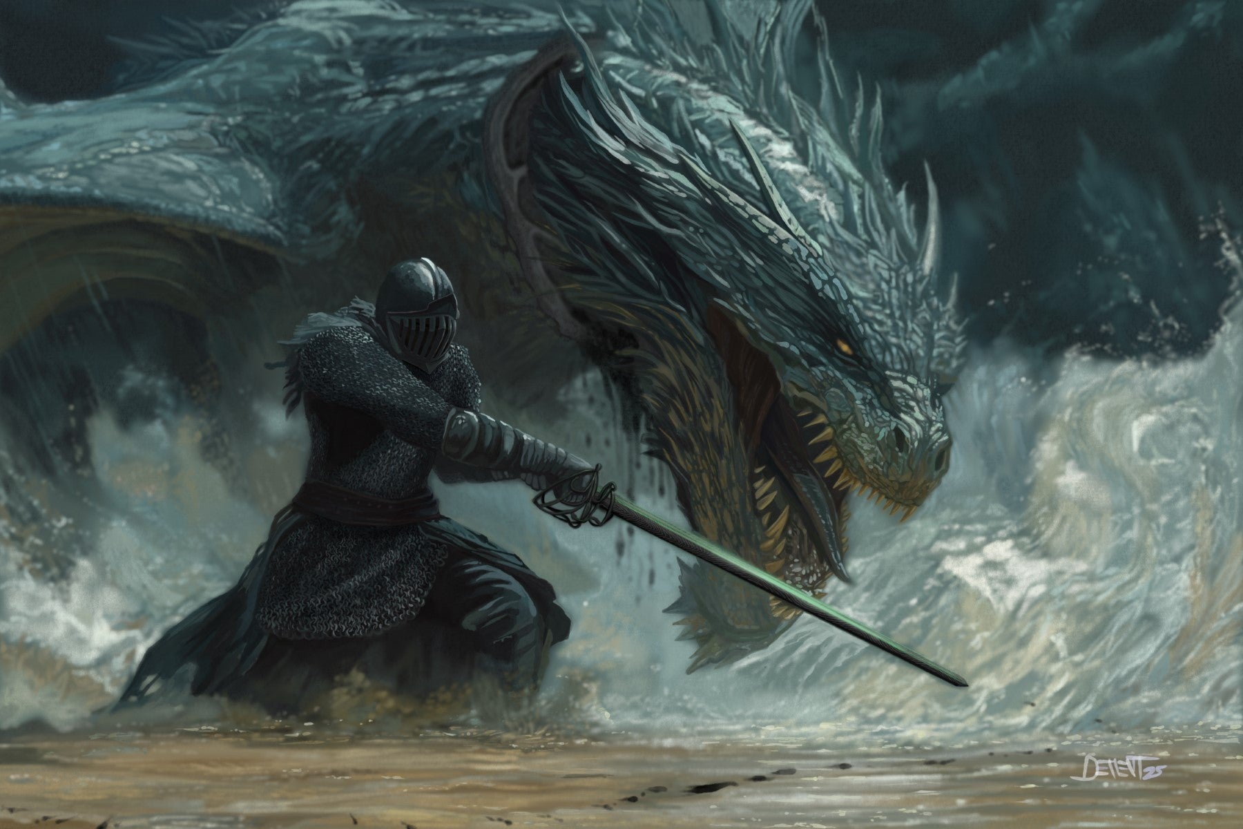 Steven Erikson once said in an interview, and I’m paraphrasing, that the character who holds the “Ultimate Badass” title in the Malazan world, someone to give even Karsa pause, is Yedan Derryg. The Watch. Here he is at Lightfall, defending the shore, as he slays the first of many dragons he would face in his stand. This one's for you Mr. Erikson!
